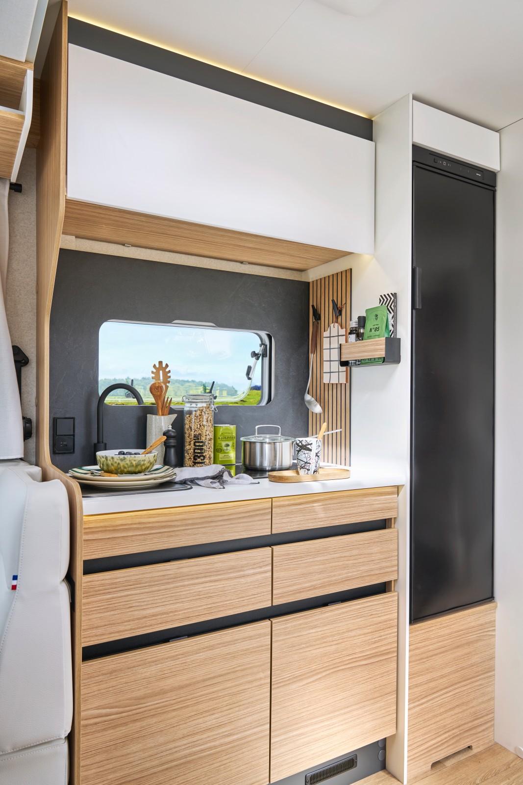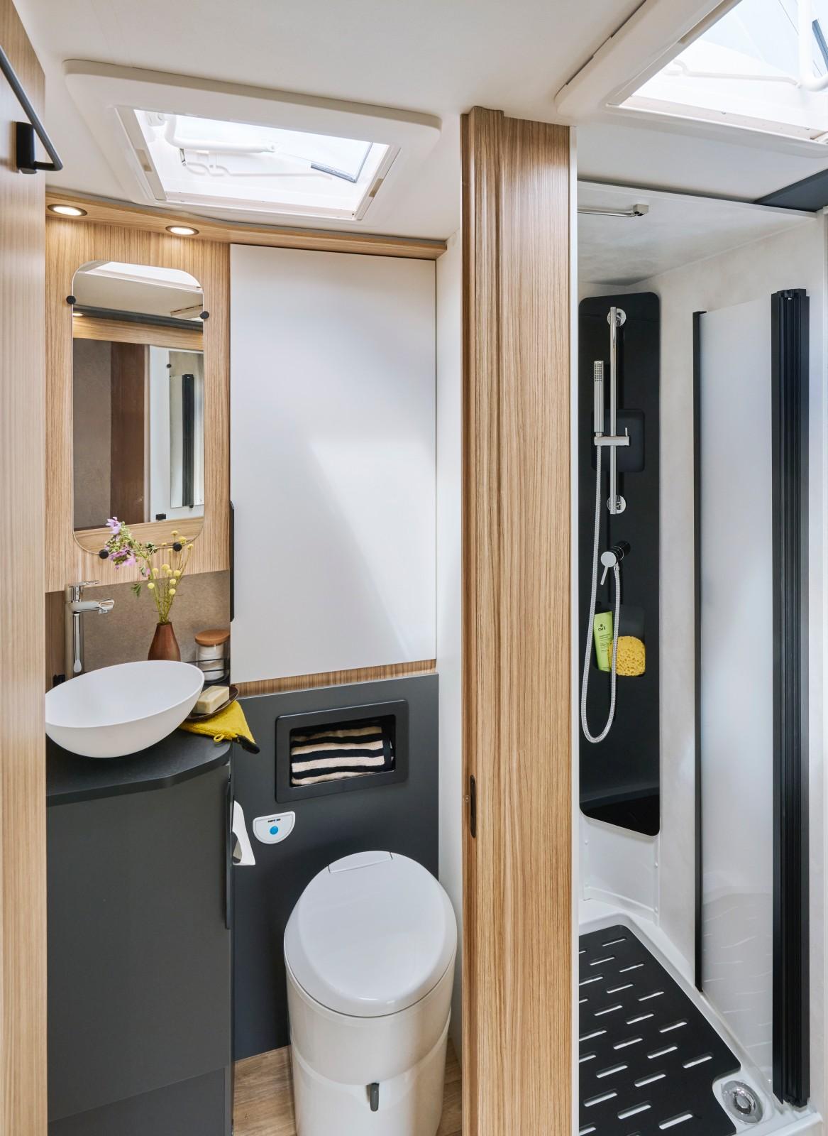 Par rapport aux autres modèles de marques généralistes cités plus haut, le Pilote P 720 U Expression tire parti de sa longueur accrue pour proposer une cabine de douche dissociée des toilettes. De quoi autoriser un usage simultané des deux postes. Un vrai point de démarcation face à ses concurrents. En outre, la porte du compartiment WC permet d’offrir un cloisonnement entre les zones avant et arrière. Un petit plus toujours appréciable.