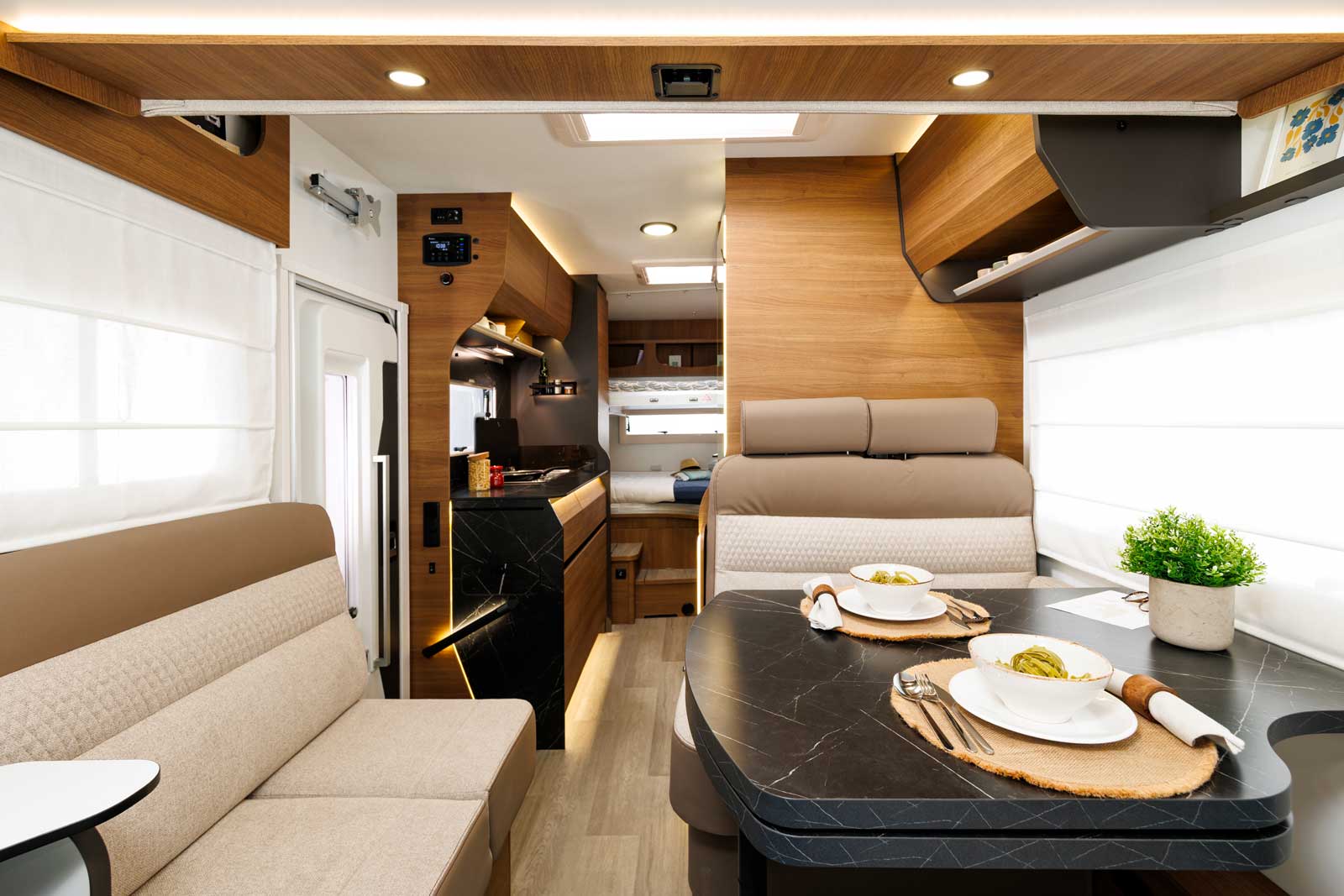 Si la question du couchage est importante dans le cadre d’un usage familial, il est également crucial que tout le reste suive à l’avenant. Aussi bien les volumes de rangement, que la cuisine ou la place dans la dînette.