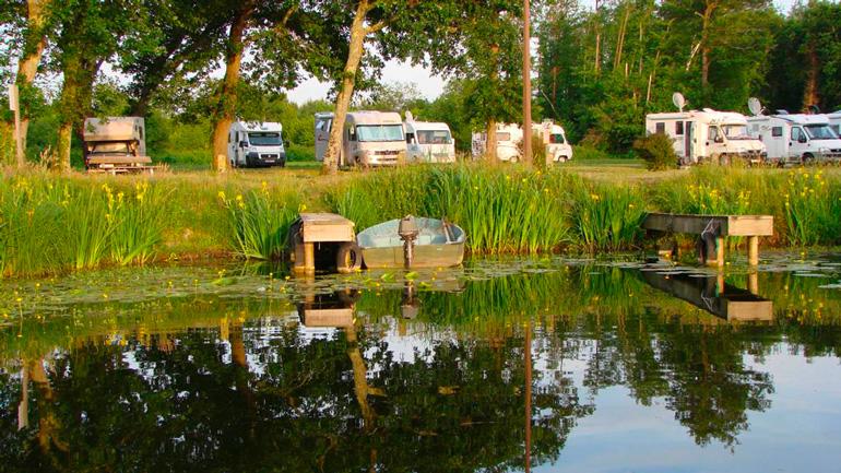 Les Landes, non pas côté océan mais côté lac, ici à la pointe sud du lac de Biscarrosse-Parentis. En partie ombragée et située à deux pas du port, l’aire de Sainte-Eulalie-en-Born compte une trentaine de places. Baignade, activités nautiques, sentiers de randonnée ou pêche, le lac offre de belles opportunités au cœur d’une nature paisible et préservée. Cerise sur le gâteau, la célèbre véloroute Vélodyssée passe devant l’aire. En quelques coups de pédales (une heure environ), vous êtes à Mimizan (et donc au bord de l’océan) via un itinéraire protégé.