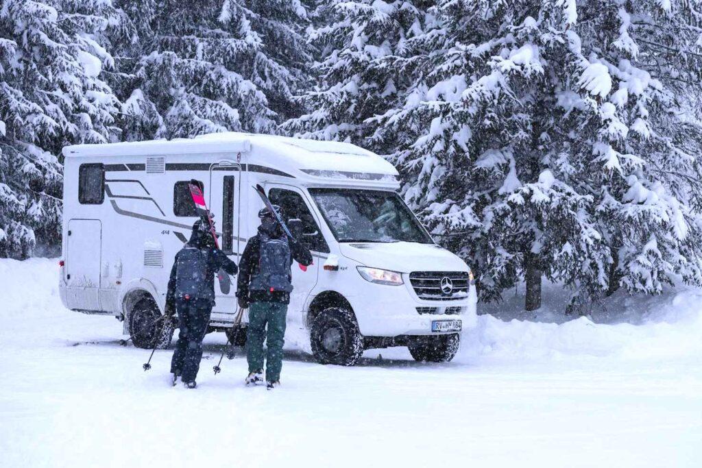 Le développement des stations de haute et moyenne montagne est toujours allé de pair avec l’accueil des véhicules de loisirs. Il faut remonter aux années soixante pour voir les premiers campings ouverts en altitude, à la faveur des « ”Plans neige” qui ont accompagné l’aménagement des stations. A l’époque de la caravane triomphante, ces campings d’altitude ont pris le nom de caravaneiges, Super-Besse, Les Menuires, Val d’Isère, Chamrousse ont été les premières stations à accueillir des campings ouverts l’hiver. Les skieurs installaient leurs caravane de novembre à Pâques, et montaient soit le week-end, pour les locaux, soit à Noël, février et Pâques pour les plus éloignés, évitant de conduire leur attelage sur des routes enneigées. Ces dernières décennies, aux caravanes ont succédé les camping-cars, les mobil-homes, et plus récemment les fourgons et les vans.