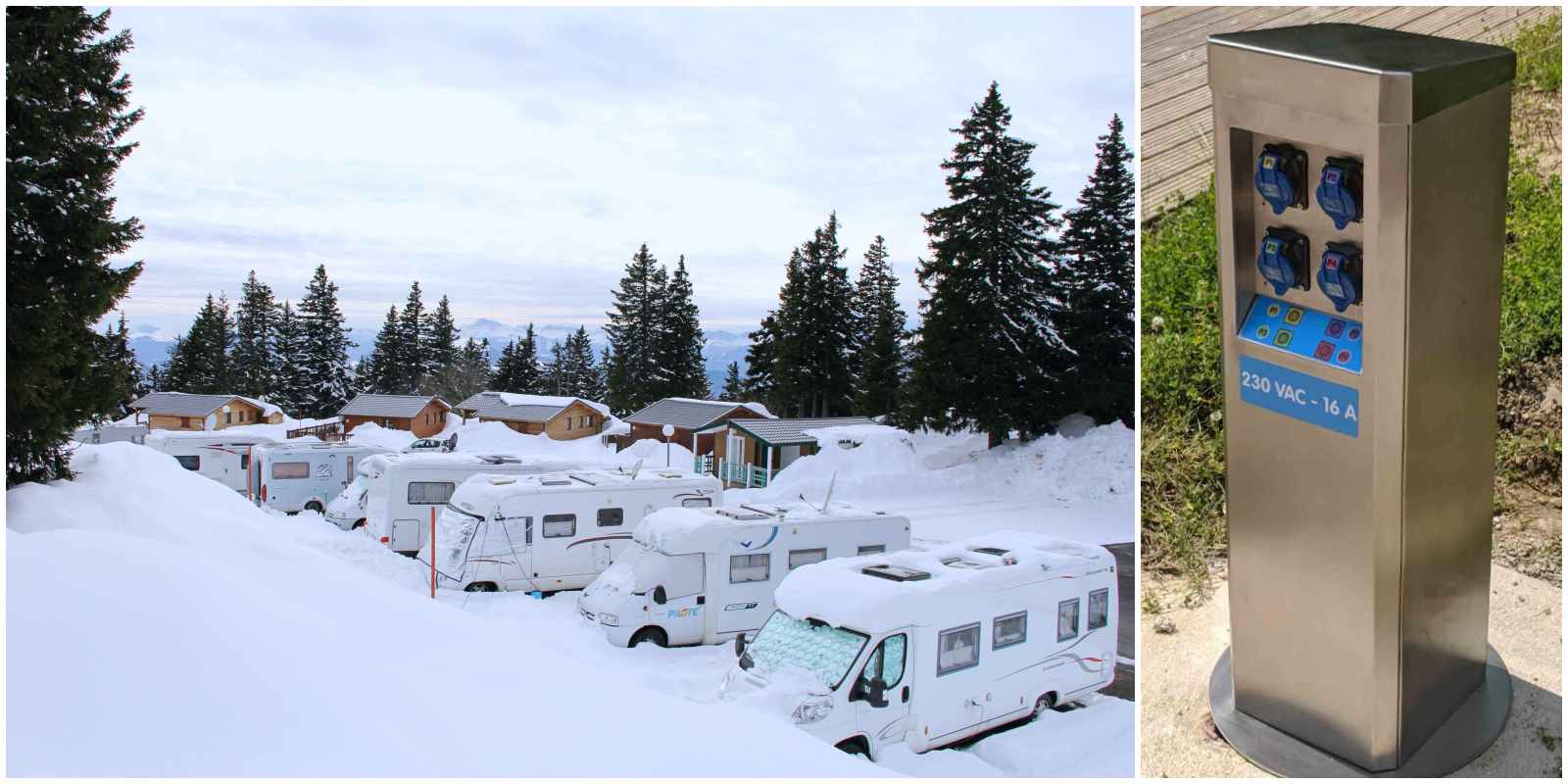En période hivernale les camping-caristes sont toujours aussi nombreux à partir à l’assaut des sommets et des stations de sports d’hiver. Cette tendance ne faiblit pas : les caravaneiges continuent de faire le plein et les aires d’accueils poussent en altitude. Dans le même temps, on observe une montée en gamme, – et en ampères -, des infrastructures pour accueillir des camping-caristes toujours plus gourmands en consommation électrique.