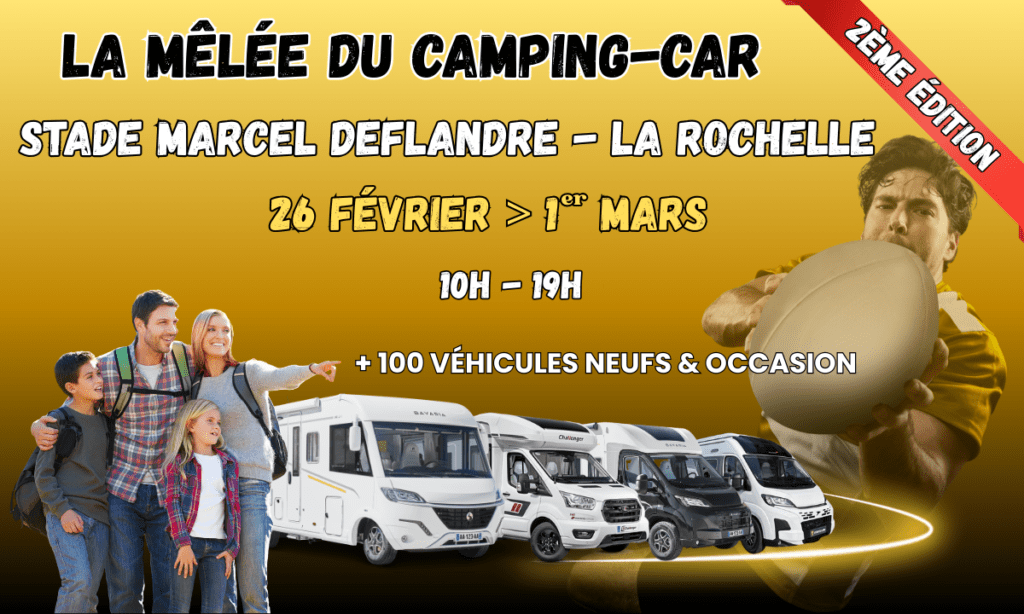 La Mêlée du Camping-car fait son grand retour du 26 février au 1er mars 2026, au Parking VIP du Stade Marcel Deflandre, à La Rochelle.