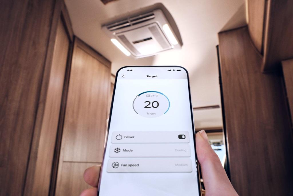 Que ce soit depuis l’intérieur du camping-car, à proximité ou en balade, cette évolution permet de contrôler et surveiller la climatisation à distance, à condition que le climatiseur soit connecté à un wifi local. Dans tous les cas, l’appli Dometic Power vous permet, depuis votre smartphone, de contrôler le démarrage progressif ou les limites de puissance dynamiques, ainsi que de personnaliser le thermostats.
