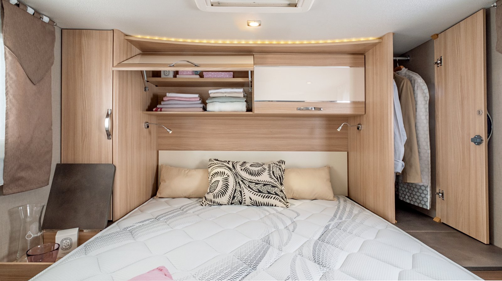 Ces profilés Premium spacieux avec lit de pavillon, sont proposés par les deux marques du constructeur vendéen : Fleurette et Florium. A vous de choisir : le style et l’ambiance, l’implantation lit central ou lit à la française, et les personnes qui vous accompagnent !
