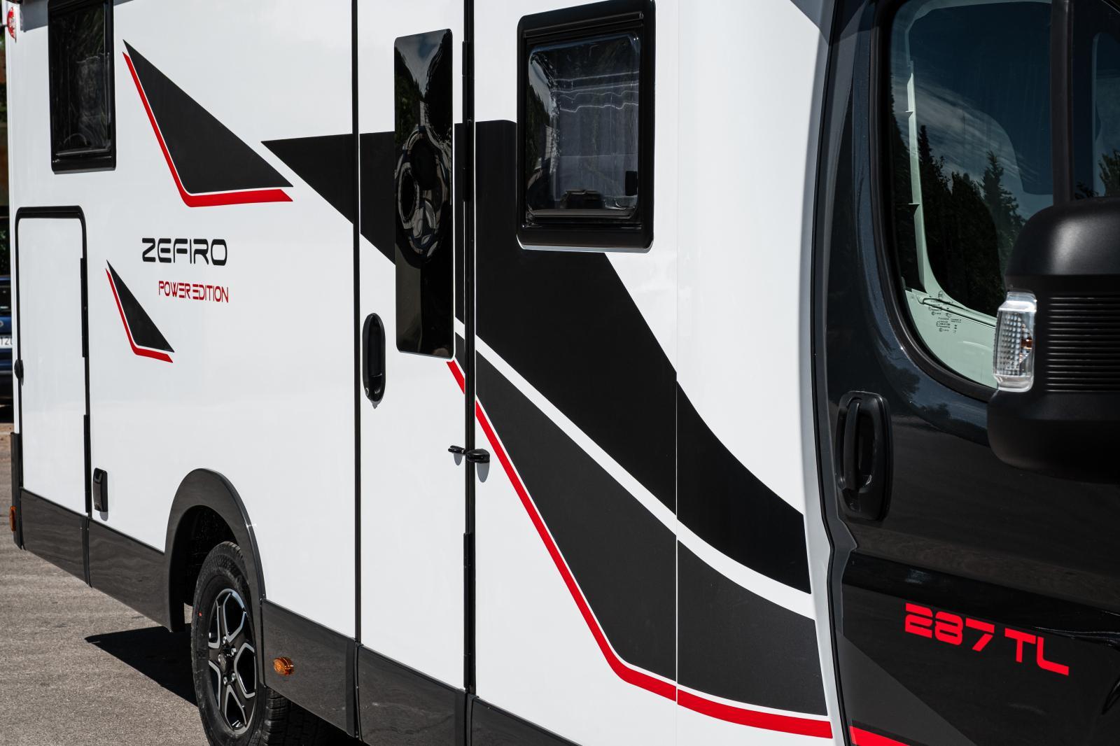 Liberté. Sécurité. Et le style dans tout ça ? Les Zefiro Power Edition ne font pas l’impasse et présentent un design exclusif très « mordant ». La peinture noir métallisé de la cabine, leurs graphismes tout en rouge et noir et leur sellerie haut de gamme leur confère un sacré caractère. De nombreux équipements supplémentaires sont également au rendez-vous, parmi lesquels le store banne, la prise gaz extérieure et la douchette extérieure.