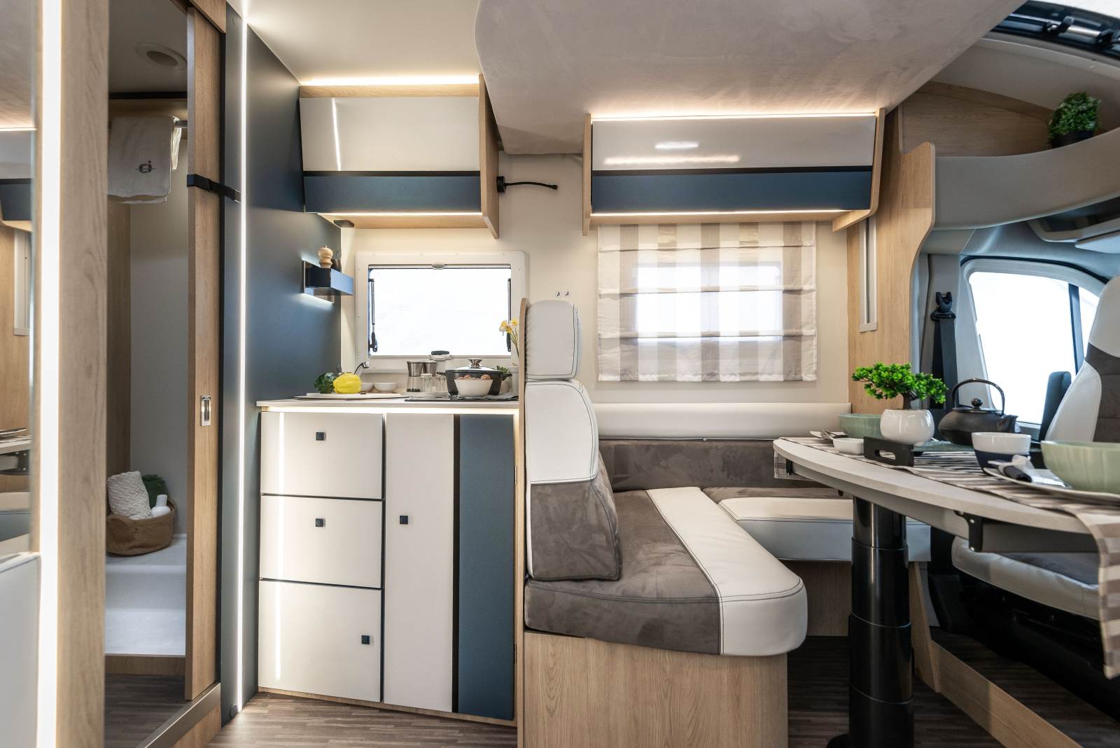 Alors même qu’ils n’ont pas le même gabarit, ces trois profilés adoptent tous un grand réfrigérateur à compression (150 L). C’est un changement significatif par rapport aux modèles habituels (hors série spéciale) chez CI. Pour accompagner l’installation de ce réfrigérateur électrique, le constructeur ajoute un panneau solaire de 200 W avec régulateur MPPT et anticipe le branchement de deux batteries en parallèle (AGM ou lithium).