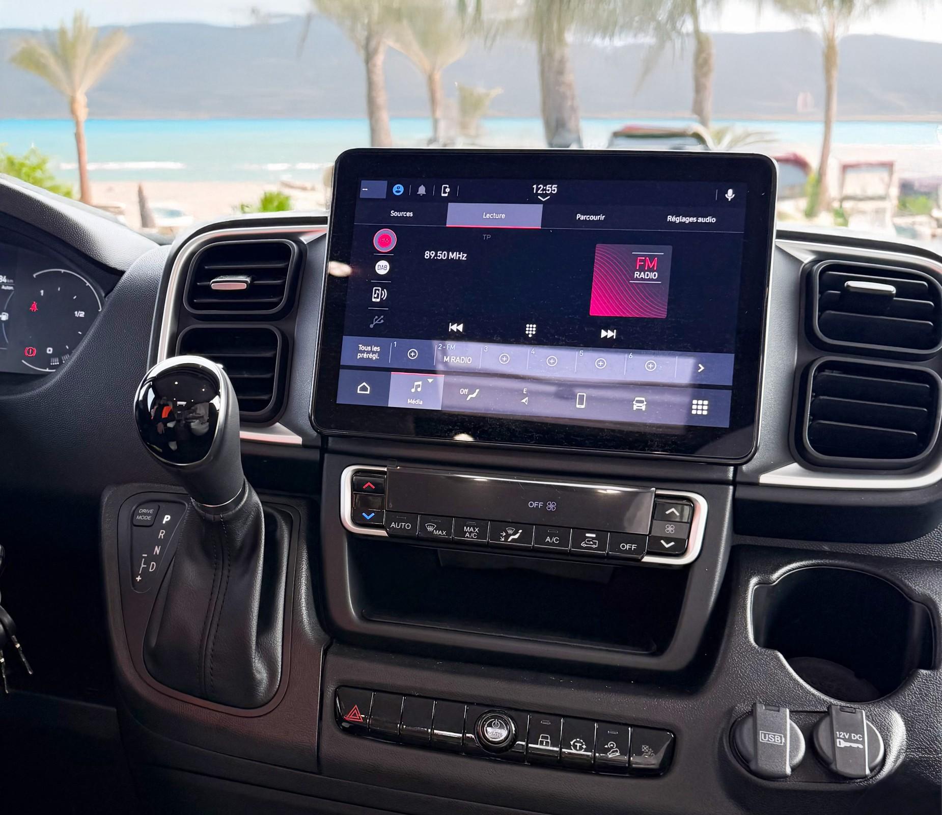 ✅ Équipement inclus : motorisation 2,2 l / 140 ch ; boite de vitesses automatique ; calandre noire ; pack Jantes (jantes alliage 16’’, volant en simili et aérateurs gris alu) ; pack Média 7’’ (autoradio Pioneer avec écran 7’’, DAB, duplication smartphone Apple Carplay/Android Auto, caméra de recul, haut-parleurs dans la cabine et la cellule) ; batterie AGM 95Ah ; panneau solaire 210 W ; combiné de chauffage/boiler au gaz Truma 6 (6000 W) ; soute avec douchette eau chaude/eau froide, grand éclairage, rails et prise 230 V ; tiroir dans le bas de caisse ; store banne avec LED intégrées ; prise gaz extérieure ; lit de pavillon électrique avec sommier à lattes ; tapis antidérapants dans les tiroirs de cuisine ; housses de draps adaptées aux matelas ; nouvelle sellerie bi-ton et bi-matière simili/tissu