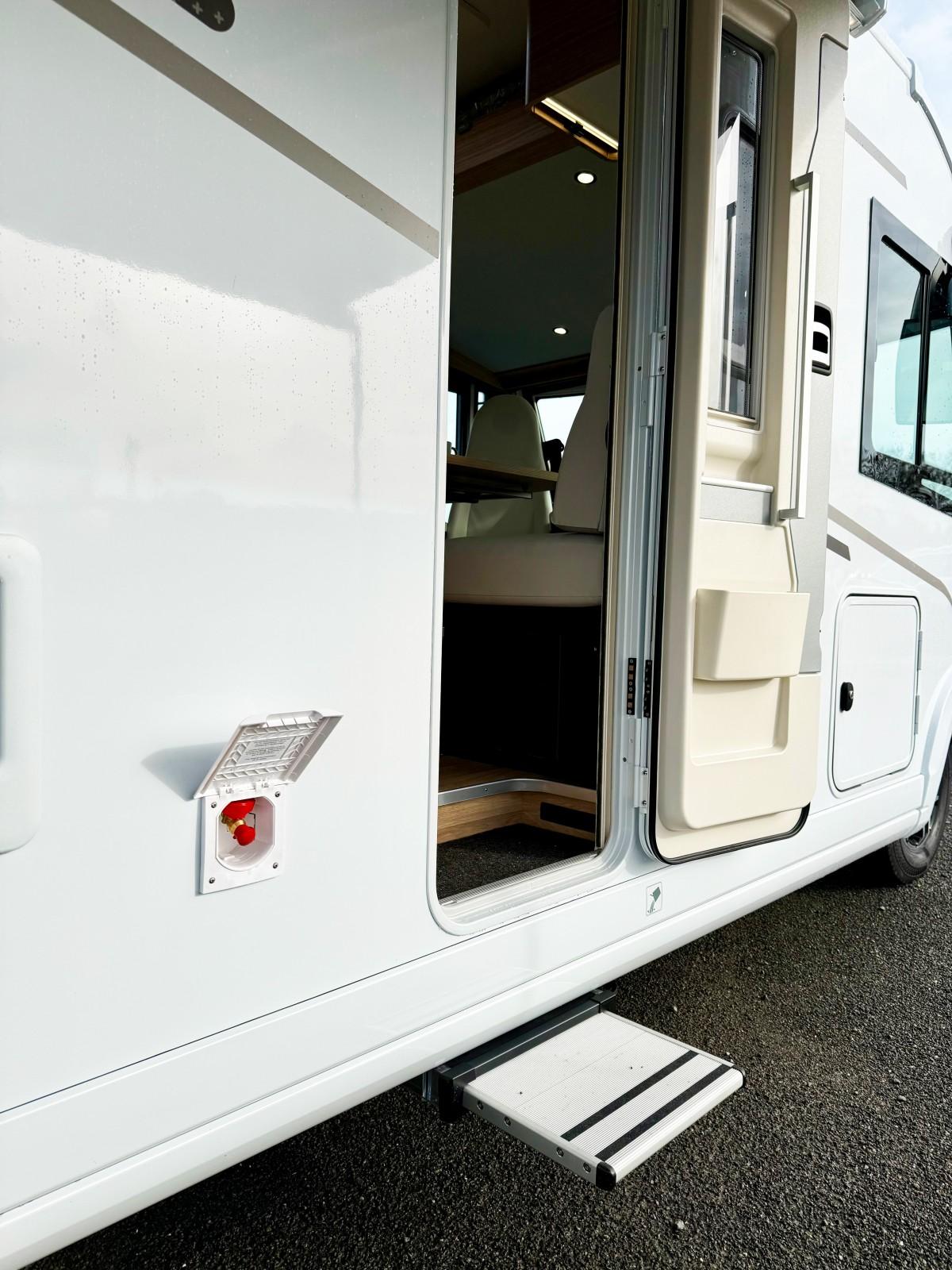➕ Options disponibles : châssis Fiat 3,65 T ou 4,4 T, soute réglable en hauteur électriquement sur le modèle à lit central, store banne avec LED intégrées