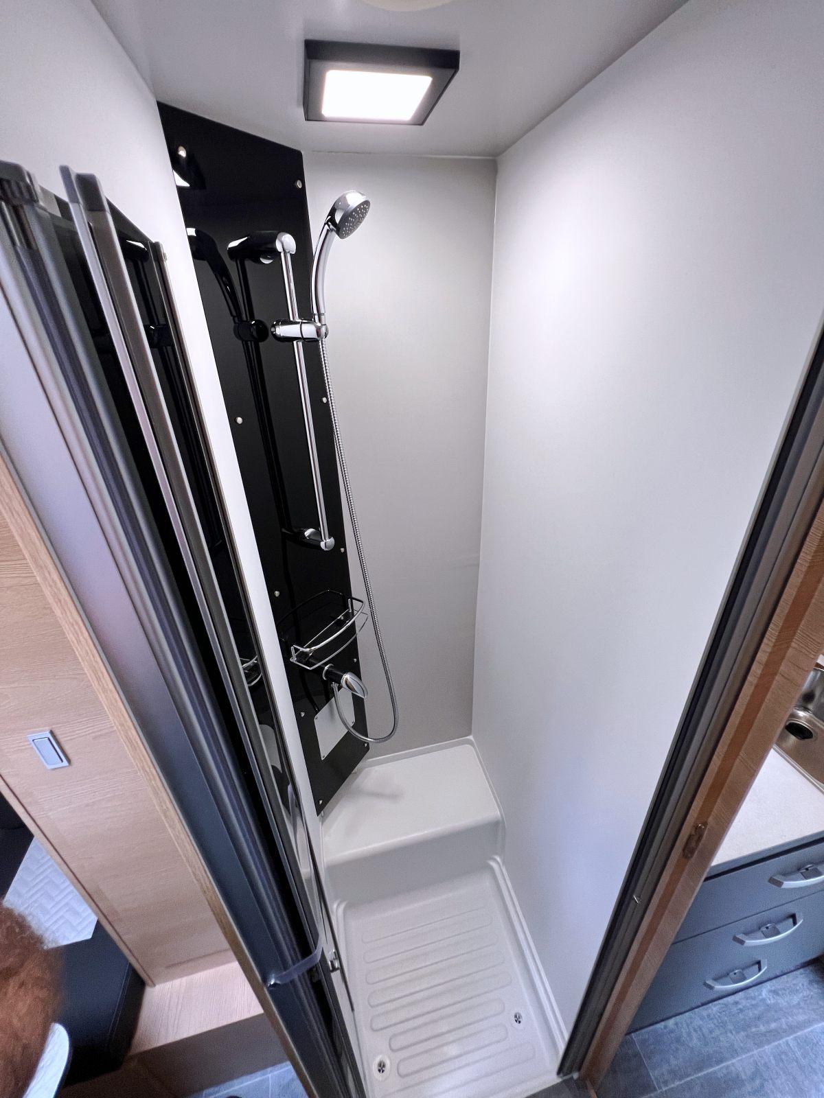 Comme ses pneus M+S de série, le Siena 396 se pliera aisément à une utilisation 4 saisons. Équipé d’un chauffage Truma Combi C 4000, il fournira chaleur et eau chaude à ses occupants. Le réservoir des eaux usées de 100 L, chauffé et isolé, ne craindra pas le gel en hiver. On profitera d’une confortable salle d’eau séparée. Cabinet de toilette d’un côté avec WC, grand lavabo, miroir, baie. Côté opposé la douche révèle une hauteur inestimée de 2,05 m, 80 cm de profondeur et 58 cm de large.