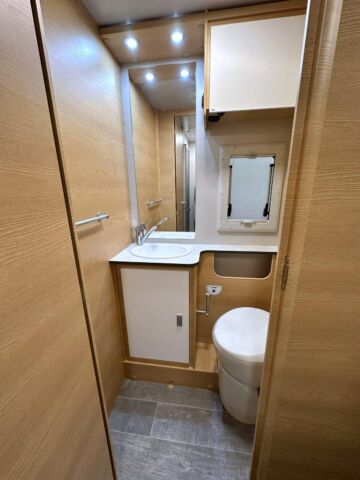 Équipement de série : climatisation cabine, suspensions renforcées arrière, ESP avec Traction+, Hill Holder, Hill Descent, Start & Stop, régulateur de vitesse, double airbag, rétroviseurs électriques chauffants, prédisposition Radio DAB, jantes 15 » tôlé, pneus M+S 4 saisons, réservoir des eaux usées chauffé, éclairage extérieur Led, porte-cellule XL avec moustiquaire, store d’isolation cabine, maxi skydôme dans le salon, Isofix, prédispositions : radio DAB / panneaux solaires / TV Digitale Sat…