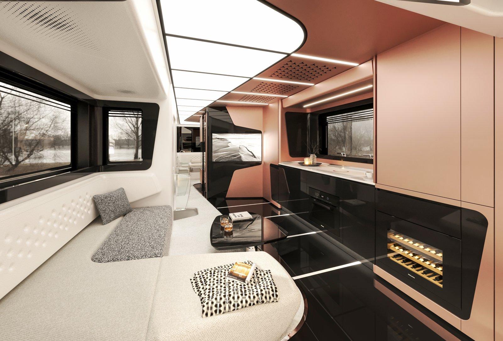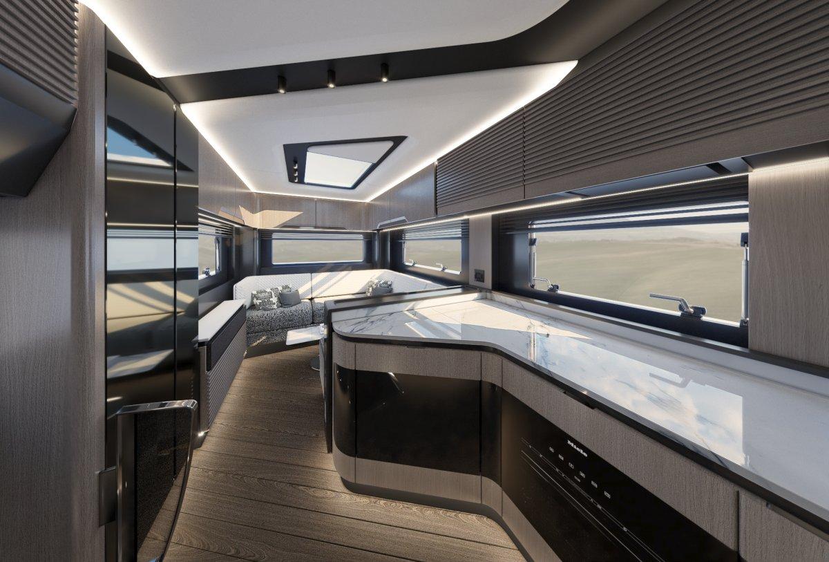 Derrière le projet de Dembell, il n’y a rien de moins que l’ambition de réinventer le camping-car de luxe. « Nous avons adopté une approche inspirée du design intérieur des yachts et avons complètement repensé les tendances existantes, souligne le constructeur magyar sur son site. L’ensemble du mobilier dégage une atmosphère nautique raffinée. Le choix des formes et des couleurs est à la fois sophistiqué et intemporel, ce qui lui permet de résister aux tendances éphémères », assure-t-il. Pour ce faire, l’entreprise travaille en collaboration avec un studio italien spécialisé dans l’aménagement intérieur des yachts.