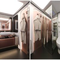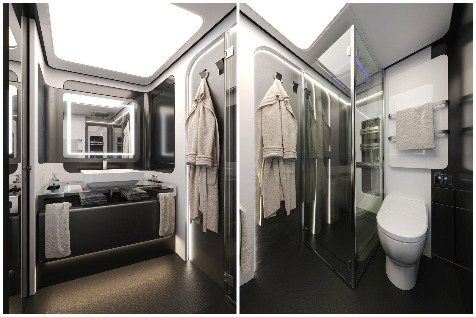 Pour ce qui est de la vaisselle, offerte avec le véhicule et badgée Dembell, elle est signée de la jeune pousse Silwy. Celle-ci propose une gamme de plats et d’accessoires magnétiques – verres, assiettes, bols, etc. – intégrant un aimant moulé et intégré. Ils peuvent ainsi être fixés à un support métallique, fourni avec, qui assurent leur parfait maintien, même en mode route. Parmi les autres solutions innovantes, citons encore les toilettes japonaises Tecma avec jet d’eau (et en option, fonction massage).
