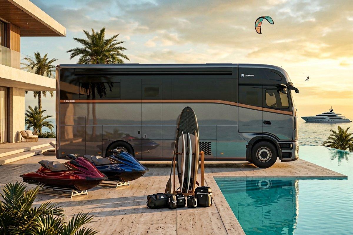 En France, le summum en matière de camping-cars de luxe était jusqu’ici représenté par Morelo et Concorde. Deux marques allemandes qui construisent des camping-cars dont le prix est compris entre 200 000 € et 900 000 €. Un segment un cran au-dessus, donc, les Carthago, Le Voyageur, Frankia, Niesmann+Bischoff et même Notin (hors Liners). Dembell repousse encore plus loin les limites du luxe et entre en concurrence avec les constructeurs les plus élitistes du secteur, tels Vario Mobil ou Volkner Mobil.