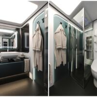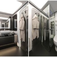 A bord, oubliez le plastique ou le contreplaqué. Dembell utilise uniquement des matériaux nobles et naturels tels que le bois massif, l’acier, le cuir, le marbre ou le cristal. En ce qui concerne les équipements électro-ménagers et high-tech, le fabricant à recours à ce qui se fait de mieux à l’instar de Miele (lave-linge & sèche-linge, four / micro-ondes, plaques à induction 4 feux, hotte), Liebherr (frigo 184L avec freezer 59 L), Fischer & Paykel (lave-vaisselle) ou encore Bose / Bang & Olufsen (systèmes audio). Tous les meubles sont par ailleurs dotés de systèmes de fermeture assistée et se verrouillent automatiquement à l’allumage du moteur.